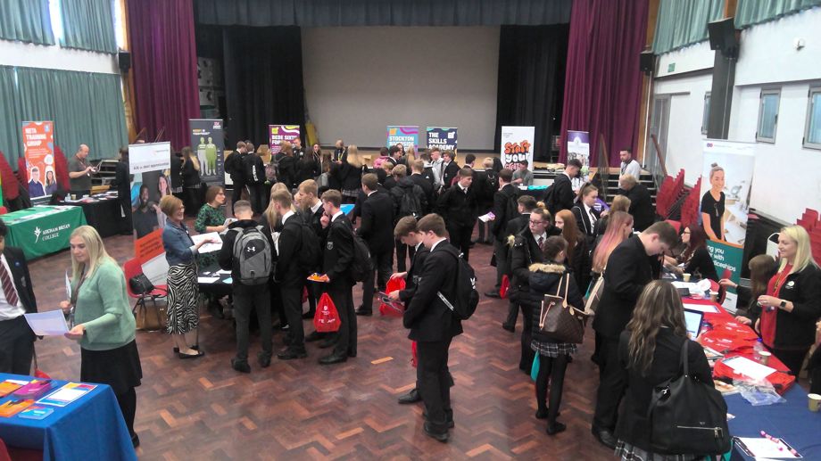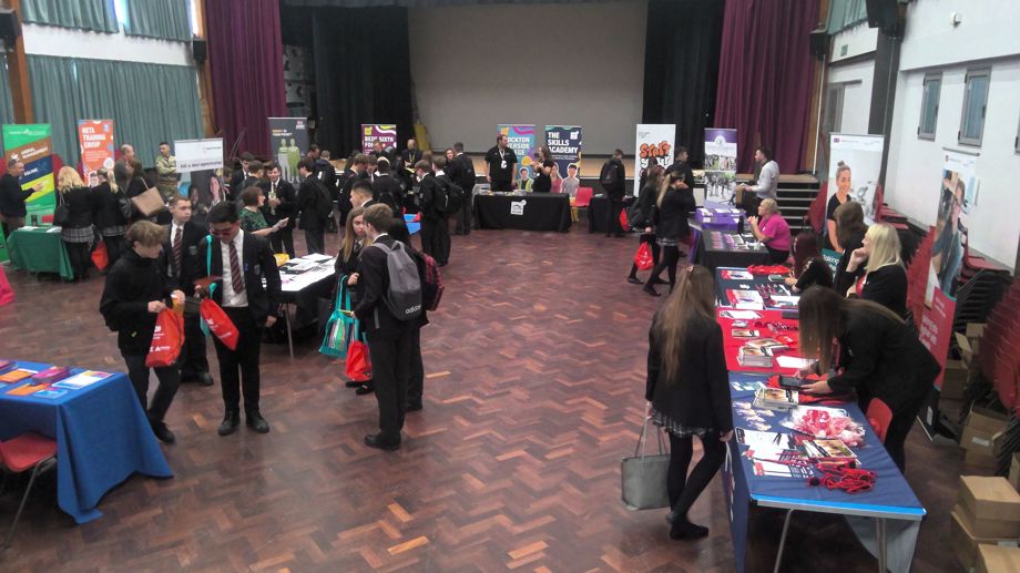 BackLast week, our Year 11 students were given the opportunity to collect information from a number of local colleges and apprenticeship providers. The event was set up as a marketplace in the school hall and groups of students were given time to talk to college representatives and ask questions regarding their future education.